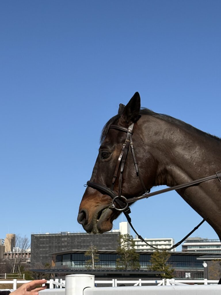 競走馬としてデビューしましたが現在は馬事公苑で乗馬の訓練をしているそうです。